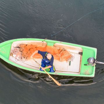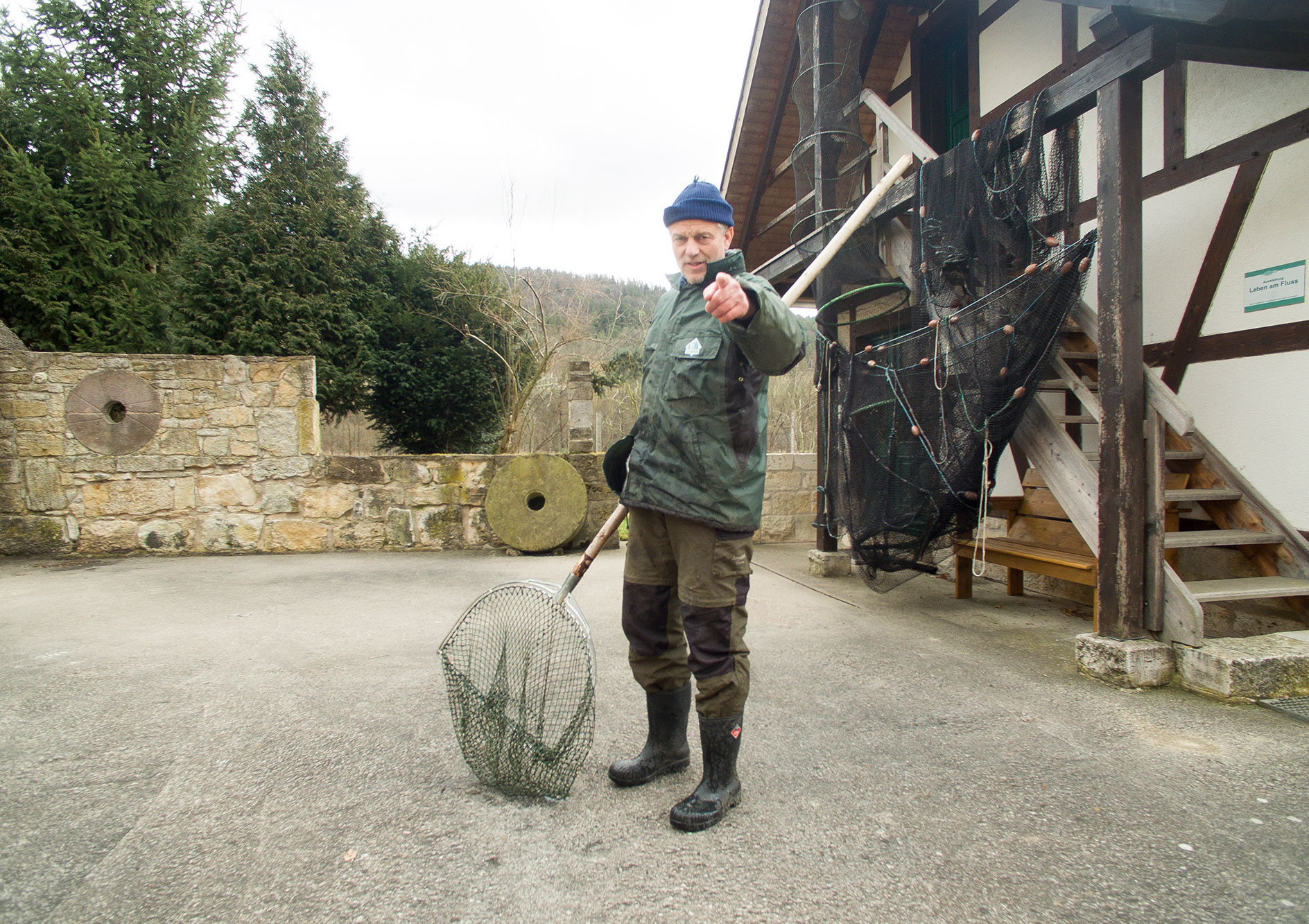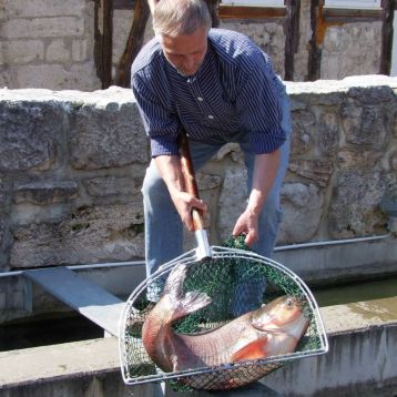 Darüber hinaus erfolgt eine anschauliche Schulung anhand von Präparaten, Fanggeräten und Schautafeln (Ausstellung „Leben am Fluss“) sowie lebender Fische (Flussaquarium).